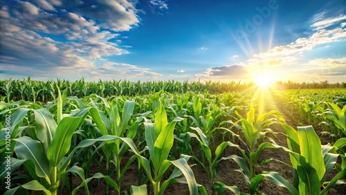 corn, field, agriculture, farm, rural, summer, crop, growth, plant, nature, landscape, outdoors, sunny, sky, blue, fresh, organic, harvest, food, healthy, farming, countryside, scenic, panoramic, fisheye, vibrant, lush, leaf, sunlight, natural, beauty