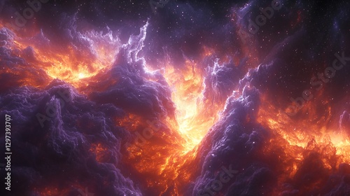 Fiery cosmic nebula, space clouds, astral fire, cosmic landscape, digital art, background image