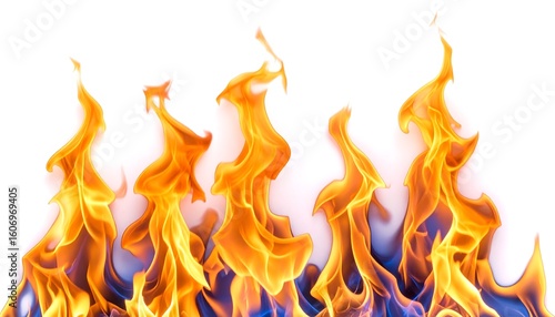 Fiery flames against white