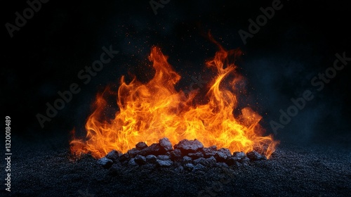 flames, fire, burning, heat, ember, energy, glow, orange, yellow, red, coal, rock, dark, black, ash, smoke, sparkle, light, background, texture, abstract, warm, balefire, dangerous, fuel, hot, intense, outdoors, smoulder, ignite, pyre, blaze, fiery, vapour, flicker, charcoal, ground, surface, crackle, combustion, power, destruction, element, inferno, flare, ignition, illumination, isolated