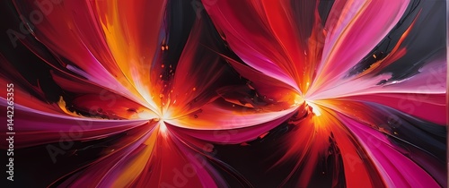 Fiery red and vivid pink abstract oil paintings conveying intense emotions through dynamic brushstrokes