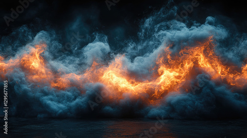fire, smoke, cloud, water, flames, dark, night, storm, explosion, dramatic, fantasy, apocalyptic, inferno, ocean, horizon, landscape, texture, digital, graphic, surreal, design, element, background, graphic design, illustration, art, wallpaper, image, visual, scene, abstract, powerful, destruction, chaos, energy, burning, intense, huge, fiery, firestorm, volcano, lava, fog, mist, atmosphere, background