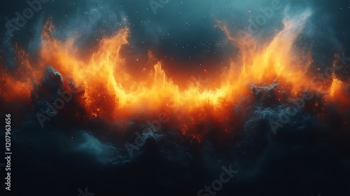 fire, flames, eruption, volcano, abstract, art, artwork, digital, painting, texture, background, orange, red, yellow, blue, dark, night, sky, smoke, dust, particle, energy, power, intense, heat, light, glow, bright, cosmic, mystical, fantasy, surreal, dramatic, vibrant, explosive, dynamic, majestic, spectacle, powerful, awesome, incredible, beautiful, amazing