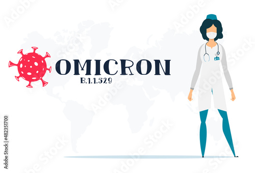 Fighting the Omicron B.1.1.529 virus. Doctor woman. Vector illustration