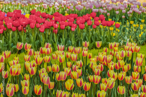 tulip, colourful, rare, closeup, up, flower, flower garden, full bloom, flowerbed, red, plant, open air, red, copy space, gardening, sweet, vivid, park, light, young, pink, lovely, pretty, field, yard, grass, meadow, countryside, farmland, farm, landscape, nature, spring, ranch