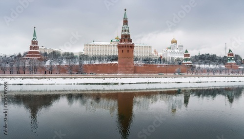 눈 덮인 모스크바의 크렘린 성벽