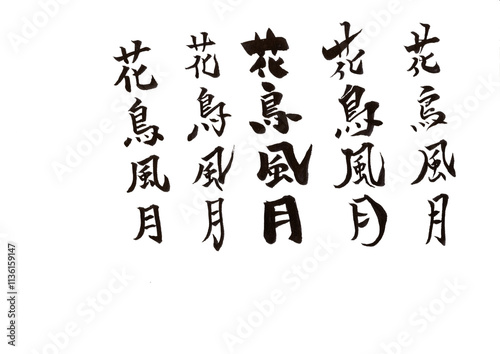 ornament, character, ink, calligraphy, monotone, signs, set, art, chinese character, freehand, material
