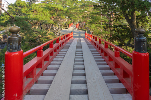 matsushima, bridge, red, architecture, history, culture, japan, landscape