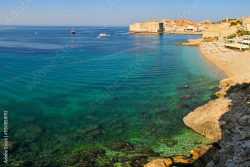 ドゥブロブニクにあるアドリア海に面したとても美しいビーチの風景