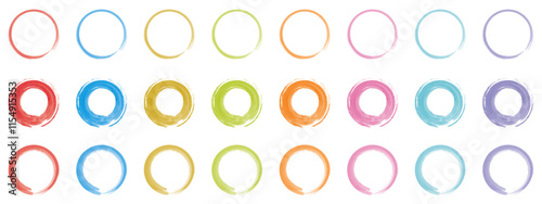 筆 水彩風 手書き 丸 円 ストローク フレーム セット カラフル