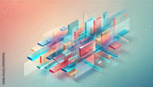 抽象的幾何学アート - カラフルな透明長方形と滑らかなグラデーション背景