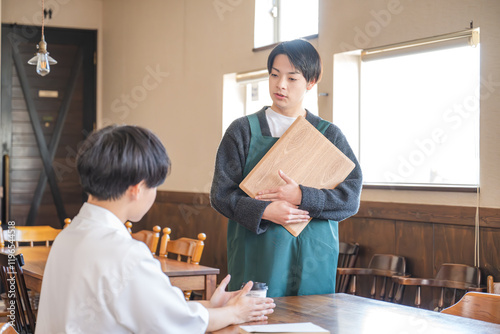 eatery, coffee, customer service, food, meal, dish, drink, lunch, menu, vacation, coffee cup, sideline, speaking, work, dinner, meal, coffee, client, friends, casual, break, work, young, indoor, japanese, people, clerk, employee, food and drink, eatery, cafes, order, carry, man, staff, conversation, enjoy, fun, enjoyment, smile, refreshing