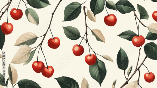 cherry, pattern, design, leaf, nature, graphic, fruit, symmetry, material, light, classic, traditional, pattern, colourful, wallpaper, decoration, fruit, green, retro, graphic design, clean, fresh, artistic, craft, sweet, branch, tenderness, warmth, design, plant, expanse, natural, illustration, decoration