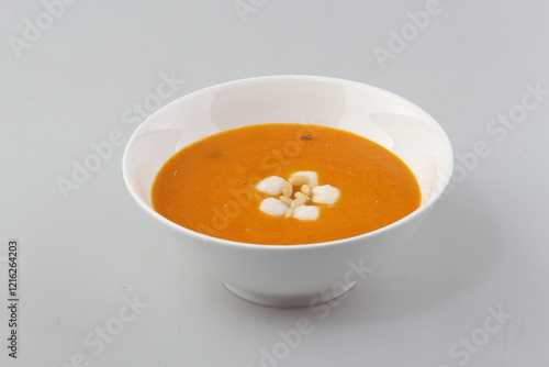 soup, food, container, vegetable, amber, meal, dining room, lunch, cream, healthy, white, plate, carrot, hot, fresh