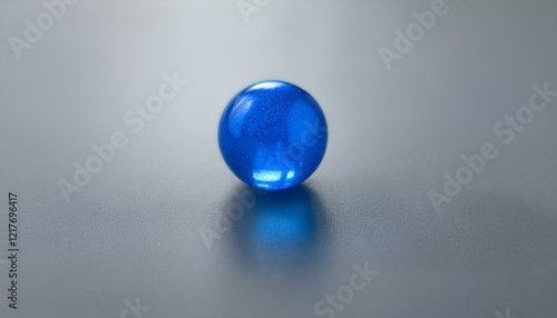 무채색의 회색 배경 위에 하나의 푸른 구슬이 반짝이며 중앙에 놓여 있다. 구슬은 투명한 빛을 반사해 강조된다