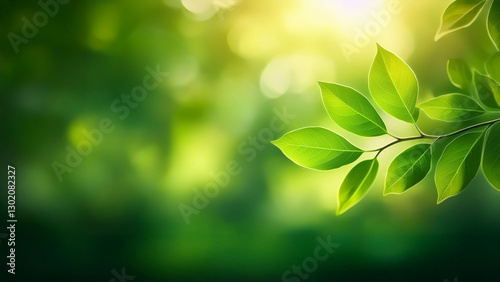 柔らかな光に照らされるクローズアップされた葉と鮮やかな緑の風景