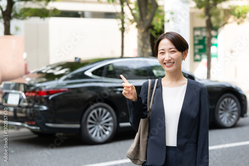 asian, japanese, woman, 30s, middle-aged, short hair, car, car, rental car, hire, second-hand car, rental, carsharing, outside, open air, town, smile, smile, career woman, appraisal, suit, sale, young, pantsuit, drive, drive, dealership, car insurance, contract, leasing