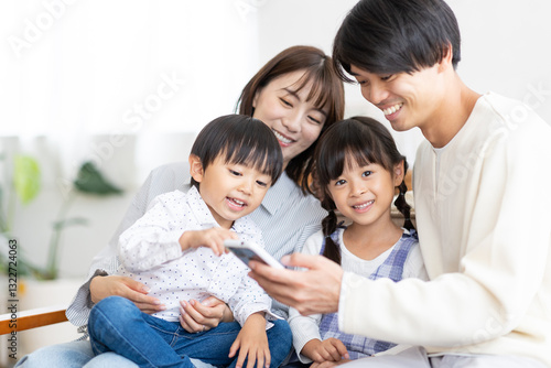 smartphone, look, family, cyberspace, couch, living room, relax, child rearing, indoor, relax, mobile phone, search, seated, 30s, sister, children, girl, woman, smile, people, son, adult, boy, man, brother, japanese, couple, father, room, mother, daughter, toddler, smartphone, young