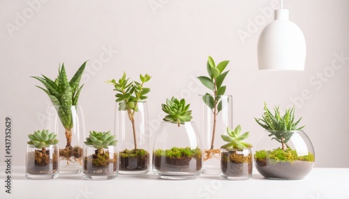 美しい観葉植物、ガラスのポット