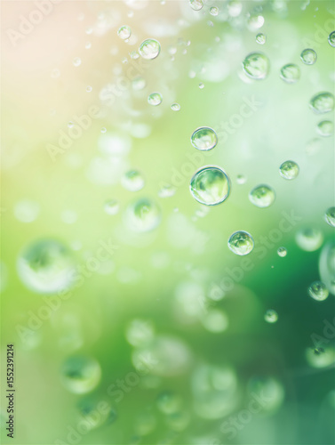窓に付いた雨粒の美しさのグリーン背景