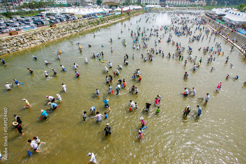 river, water, fishing, festival, net, people, crowd, summer, vacation, outdoors, beach, water, sand