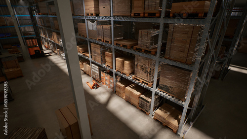 warehouse, stock, cardboard, shelf, light, shadow, route, factory, hangar, logistic, mechanism, quiet, construction, industry, architecture, forklift