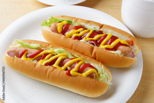 snack, hot dog, bread, breakfast, wiener, lunch, ketchup, sausage, mustard, fast food, vegetable, dish, foodstuff, salad, food, meal, meat, tea