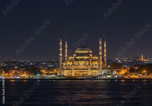 mosque, istanbul, turkey, architecture, nightscape, night, gold, dome, minaret, building, landmark, tourist attraction, travel, lovely, sparkling, light, water surface, city, building, islam, world heritage, photo, star, dark, quiet, sacred, romantic, mystic, peace, calm, tour tourism
