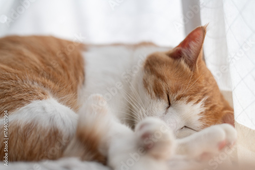 窓辺で眠る可愛い猫 茶トラ白