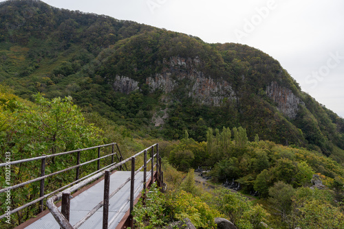 北海道 雄冬岬 展望台 海 草木 崖