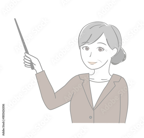指示棒を持つスーツのシニア女性