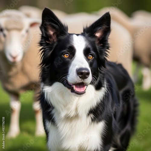 dog, puppy, farm, cattle, intelligence, bright, concentration, monochrome, hair, partner, animal, outdoors, meadow