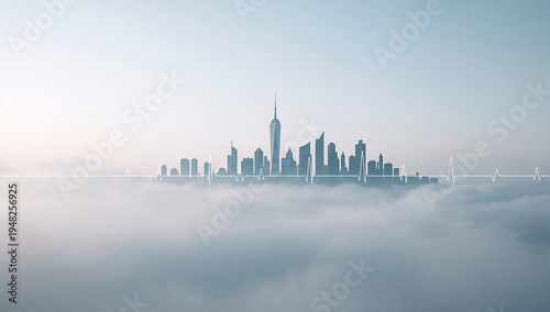 都市の心拍を表す心電図スカイラインが生命を象徴するミニマル風景