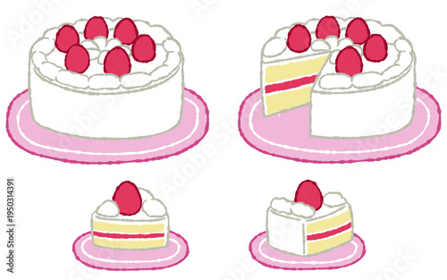 手描きでラフないちごのケーキ