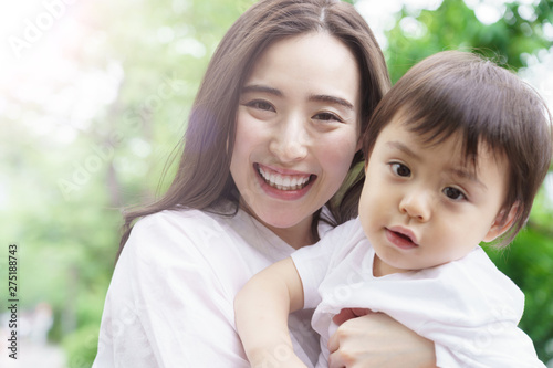 baby, family, mother, mother, toddler, child rearing, mother, mother, woman, people, smile, baby, children, homemaker, park, green, nature, open air, outdoors, wood, live, lifestyle, hug, play, portrait, happy, two people, japanese, asian