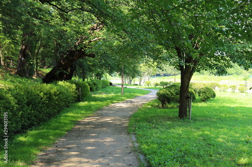park, japan, cherry blossom, summer, bench, break, rest, route, shade, grove, forest, promenade, green, leaf, wood, asia
