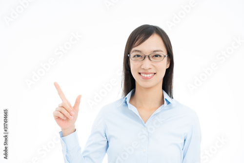woman, business, businesswoman, isolated, young, portrait, lovely, happy, smile, people, smiling, person, beauty, professional, confident, success, face, 1, standing, lady, office, suit, sweet, work, white background, beauty, copy space, studio, businessman, japanese, asian, shirt, blue, sky blue, glasses, teacher, teacher, illustrate, introduce, educated, presentation, show
