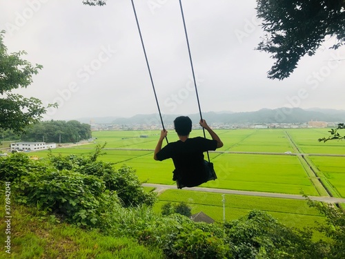 children, swing, sky, boy, jump, fun, swing, rice field, paddy, man, man, park, outdoors, silhouette, happy, summer, jump, kite, energetic, climbing, blue