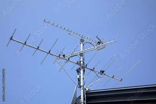 kyoto, antennae, television, television, reception, blue skies, roof, open air, kyoto, colours, horizontal, 11, sky