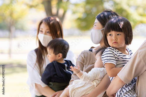 children, homemaker, mask, corona, baby, children, park, play, virus, virus, children, hay fever, open air, woman, speaking, japanese, smile, mother, mother, cold, toddler, prevention, flu, mother, health, friends, medical care, wood, contagion, 30s, verdure, spring, summer, marode, people