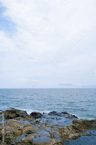beach, sea, rock, wave, landscape, nature, blue skies, sky, sunny, kanagawa, cloud, kamakura, landscape, water surface, tourist attraction, beach, japan, copy space, blank space, background, advertisement, background, bg, image, material, tour tourism, travel, journey, showplace