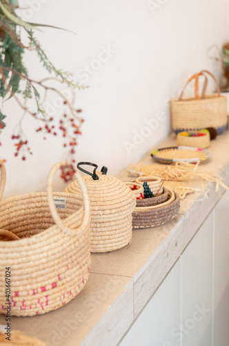 麦わら素材で作られた雑貨 ラフィア 天然素材