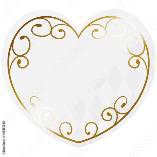 ハート型の唐草フレーム ホワイト&ゴールド 一部にダイヤパターン
