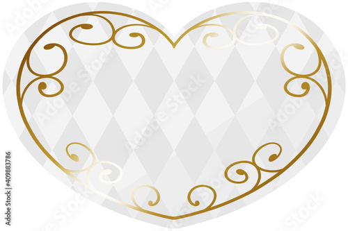 ハート型の唐草フレーム ホワイト&ゴールド 全面にダイヤパターン 横位置
