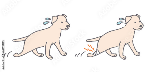 ケガをして歩く犬のイラスト