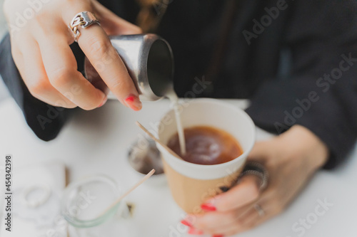 紅茶にミルクを注ぐ女性