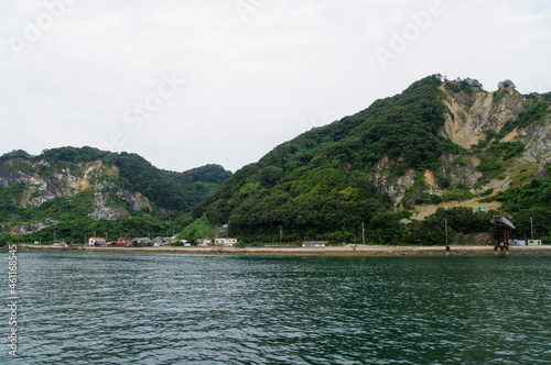 nature, seto inland sea, boat, green, desert island, mountain, sea, navigation, copy space, landscape, sky, travel, view, tour tourism, wave, island, japan