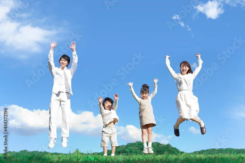 japanese, brother, lifestyle, love, child rearing, cloud, open air, family, fun, sky, lively, 30s, mountain, children, grass, girl, woman, smile, increase, people, man, blue skies, son, adult, boy, man, chum, jump, couple, mother, daughter