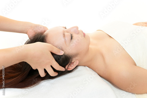 ヘッドスパで寛ぐ女性
