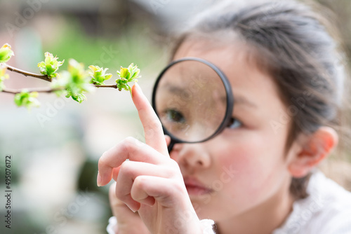 children, girl, magnifying glass, spring, burgeon, curiosity, observe, discovery, japanese, white, nature, wood, outdoors, people, girl, look, child rearing, locate, leaf, asian, mixed race, pretty, seek, magnifier, training, learning, lens, study, magnifying, examine, portrait